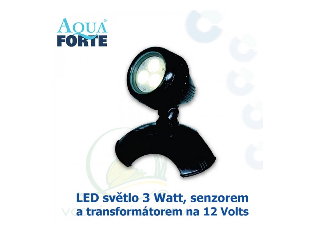 AquaForte LED světlo HP3-1, 1 ks 3 Watt LED osvětlení jezírek a zahrad s auto-senzorem ON/OFF, včetně trafa a kabelu, cca 7,5 m