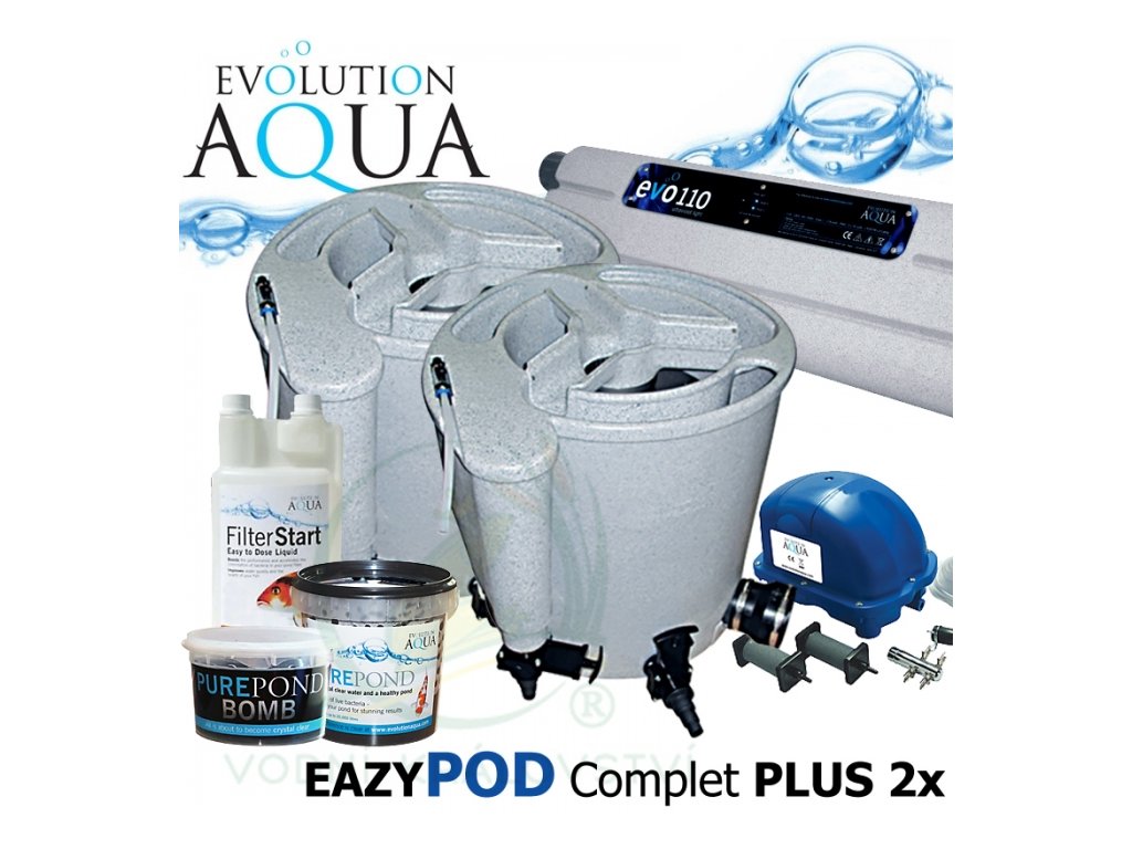 | EAZY POD COMPLETE DOUBLE PLUS se vyznačuje extrémně vysokou mechanickou účinností, jakékoliv nečistoty co se do něj dostanou prostě zadrží a kvalitní biologickou účinností pro okrasná jezírka a koi jezírka s malou osádkou. Dodávaná sestava je včetně vzduchovacího kompresoru a zabudovaného ponorného UV 18 Watt zářiče. A hlavně co je nejcennější EAZY POD vyniká neskutečně jednoduchým způsobem čištění! K čištění je potřeba vzduchovacího kompresoru, který je součástí dodávky.