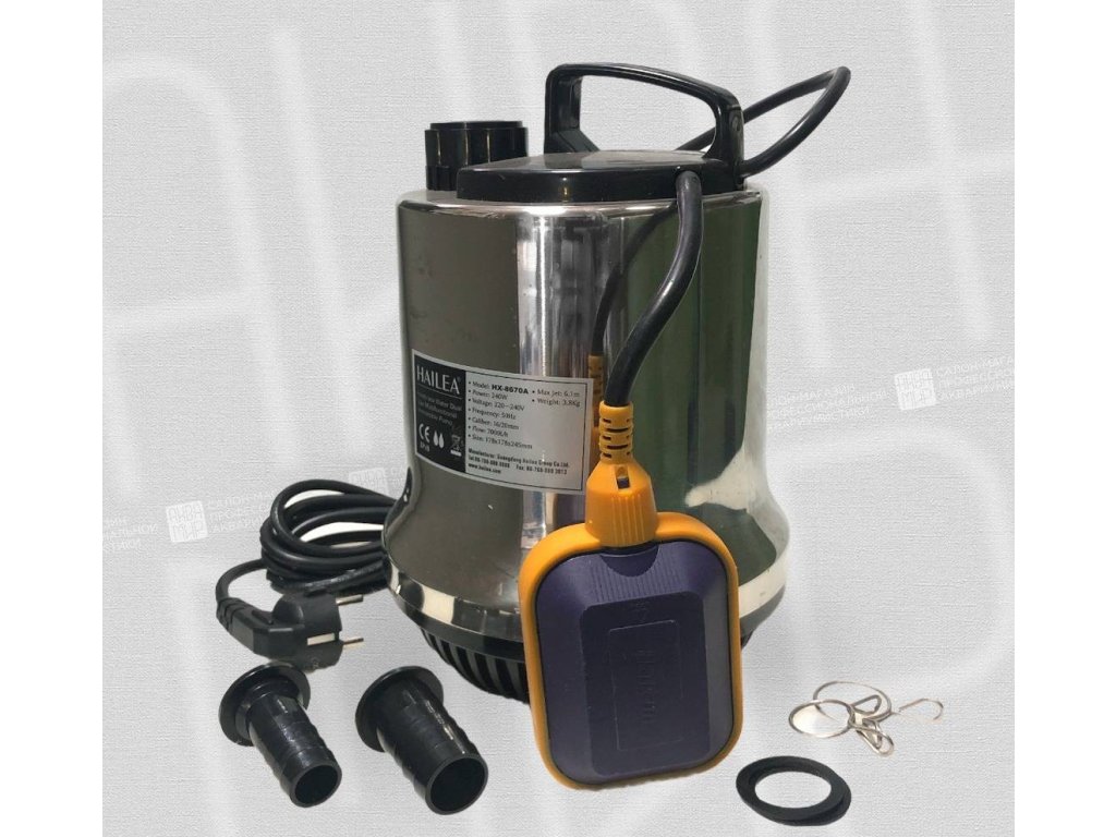 Ponorné drenážní čerpadlo Hailea HX-8670A, 6000 litrů/hod, max. výtlak 4,5m.