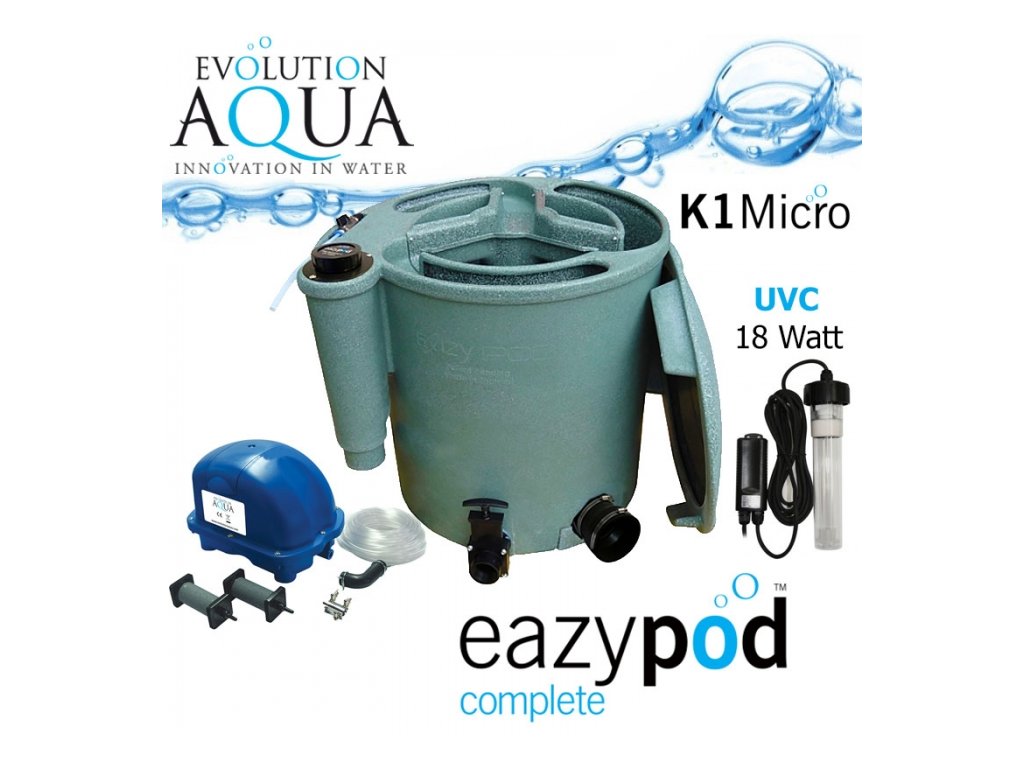 | EAZY POD COMPLETE DOUBLE PLUS se vyznačuje extrémně vysokou mechanickou účinností, jakékoliv nečistoty co se do něj dostanou prostě zadrží a kvalitní biologickou účinností pro okrasná jezírka a koi jezírka s malou osádkou. Dodávaná sestava je včetně vzduchovacího kompresoru a zabudovaného ponorného UV 18 Watt zářiče. A hlavně co je nejcennější EAZY POD vyniká neskutečně jednoduchým způsobem čištění! K čištění je potřeba vzduchovacího kompresoru, který je součástí dodávky.