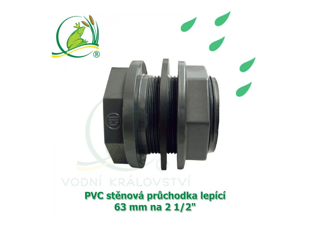 Extra pevná PVC stěnová průchodka 63 mm, napojení lepení/lepení a 2 1/2 coulový ext. závit, s dvojím těsněním