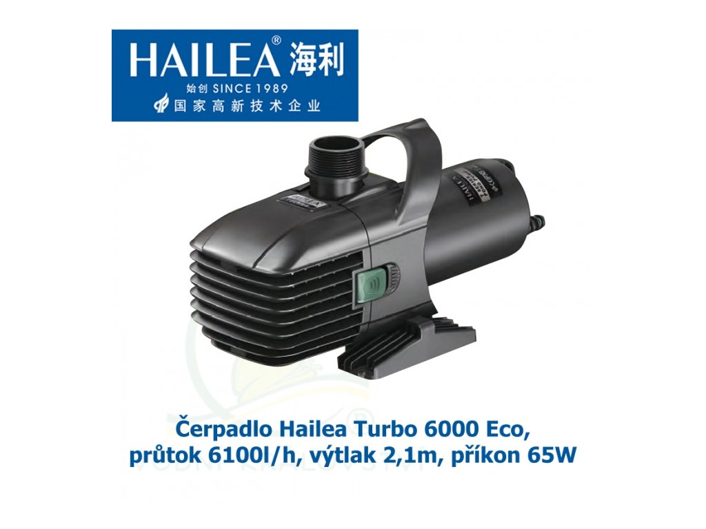 Hailea Turbo 6000 Eco, průtok 6100l/h, výtlak 2,1m, příkon 65W