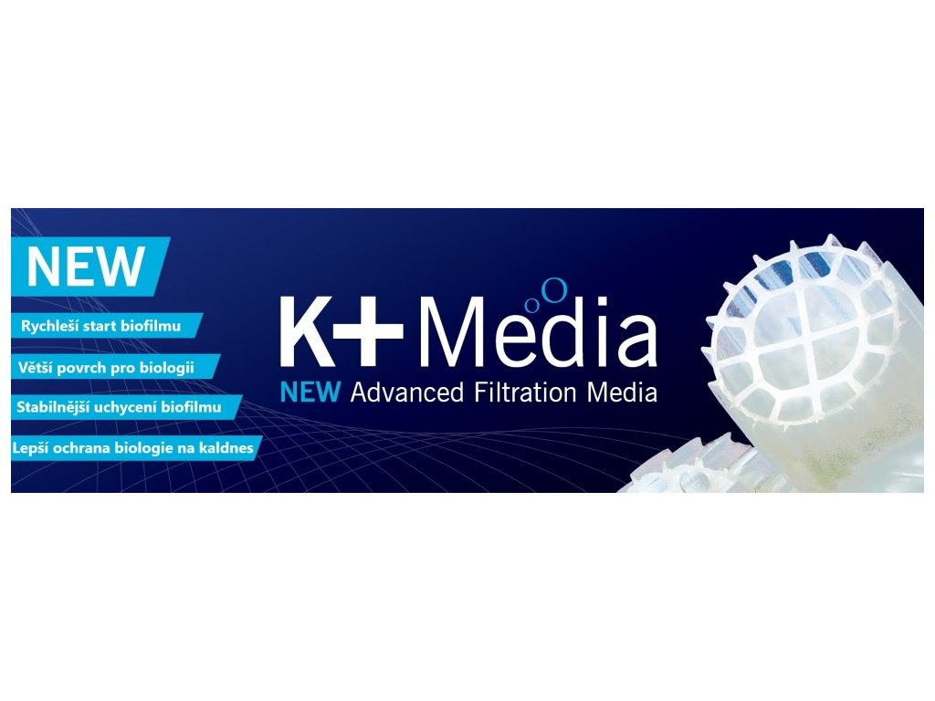 Při výrobě K + media se přidávají do surovin minerály a enzymy. Výsledkem tohoto procesu, který je pro Evolution Aqua jedinečný, je filtrační médium, které překoná většinu svých konkurentů díky své velké chráněné ploše, ale také odpovídá na problém, jak zkrátit čas potřebný na zrání filtru.