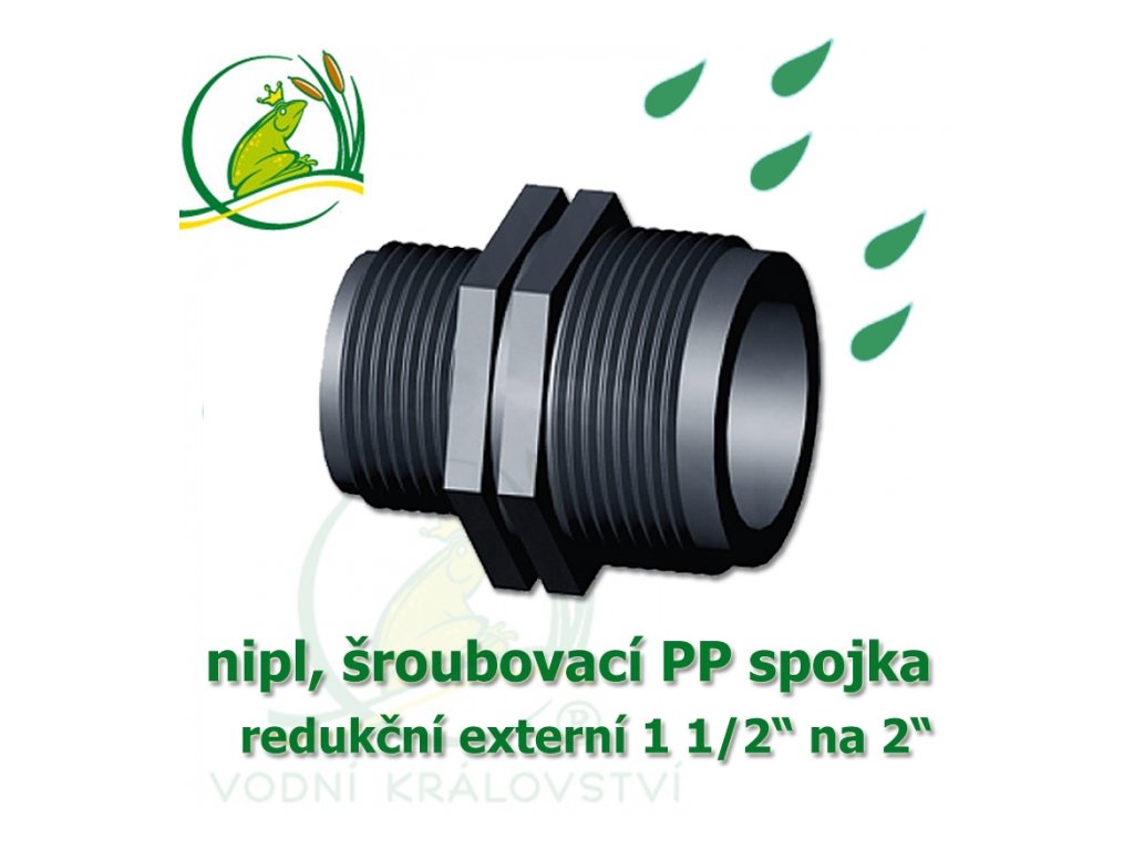 nipl 2 na 1 1/2, jezírková PP spojka redukce, šroubení externí 2 na externí 1 1/2