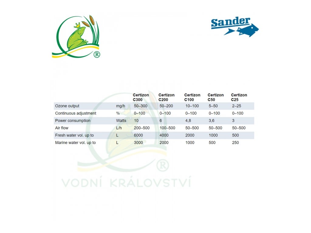 Ozonizer Certizon C 100, ozonizační jednotka Sander, 100 mg/h, pro akvaristiku a jezírka do 2-4m3, napojení 4mm