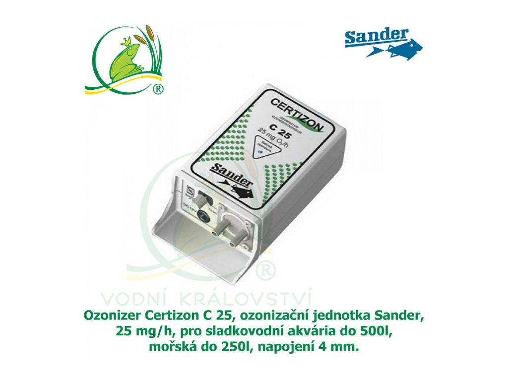 Ozonizer Certizon C 25, ozonizační jednotka Sander, 25 mg/h, pro sladkovodní akvária do 500l, mořská do 250l, napojení 4 mm.