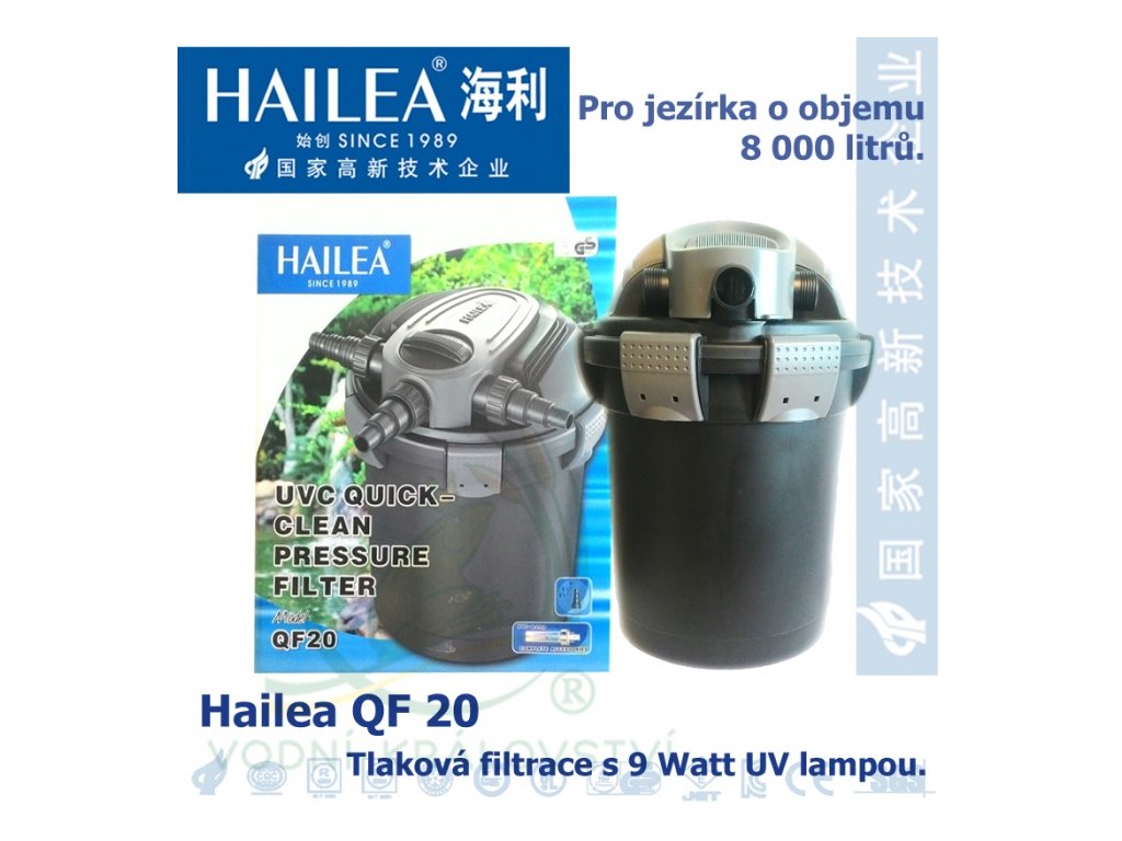 Tlaková filtrace Hailea UVC 9 Watt QuickClean QF20 je určena pro jezírka do 10.000 litrů
