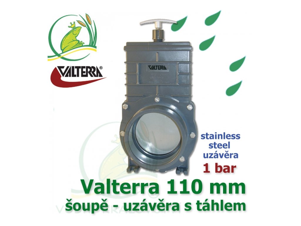 Valterra šoupě nerez 110 mm originál, tažný PVC uzávěr s nerezovým uzávěrem