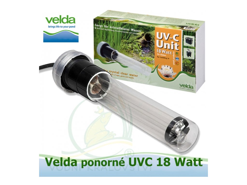 Velda ponorné UV-C zářiče, model 18 Watt je určený do jezírek do 18 m3, speciálně do filtrací Velda Clear Control 25, 50, 75, GIANT XL, Cross Flow