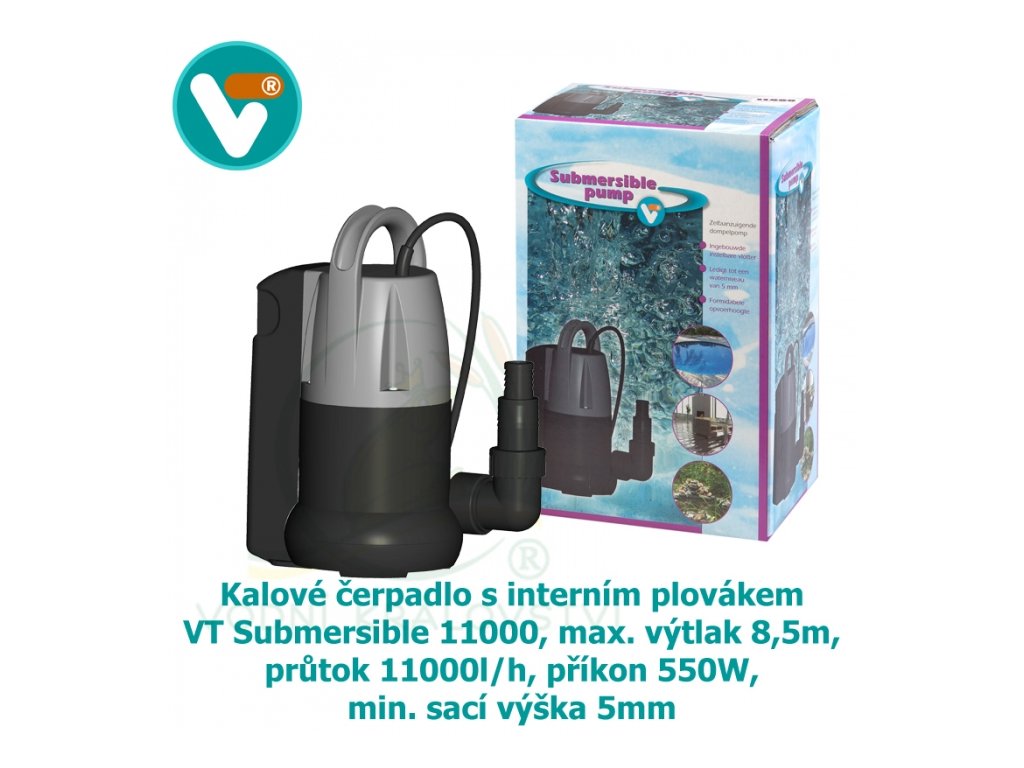 VT Submersible 11000, Kalové čerpadlo s interním plovákem, max. výtlak 8,5m, průtok 11000l/h, příkon 550W, min. sací výška 5 mm
